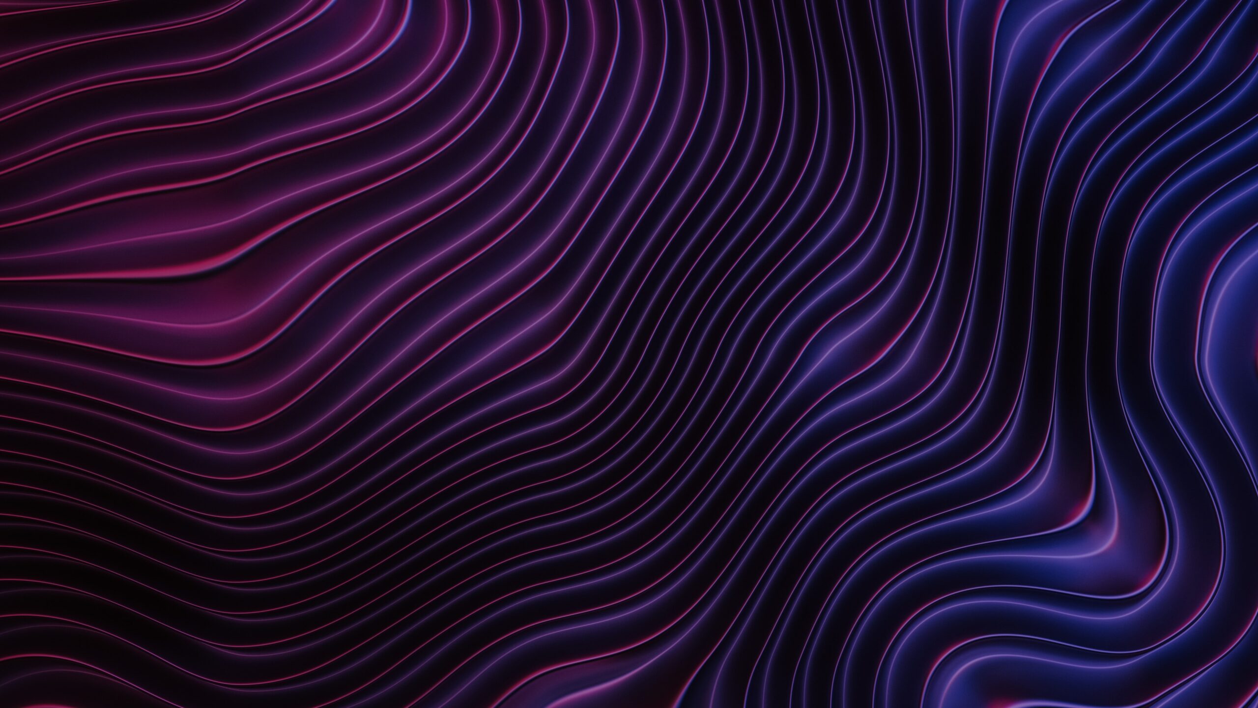 深邃的黑色背景上,紫蓝色调的抽象波浪线条如漩涡般向中心流动汇聚。线条兼具柔美曲线与几何韵律,在暗色基底上形成渐变光影层次。