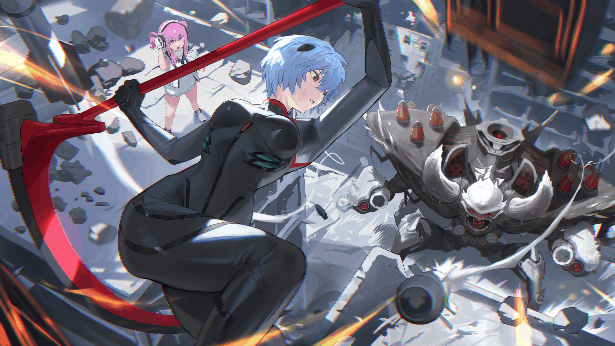 新世纪福音战士 绫波丽 镰刀 机器人 紧身衣 废墟 4k
