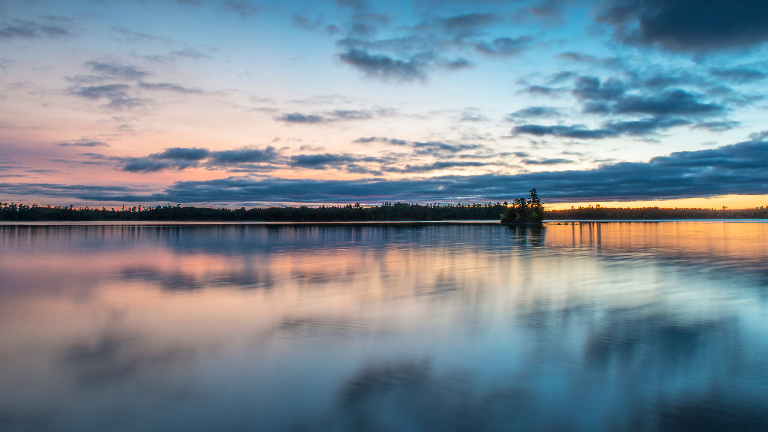 边界水域 独木舟区 荒野区 明尼苏达州 湖泊 倒影 晚霞 4k