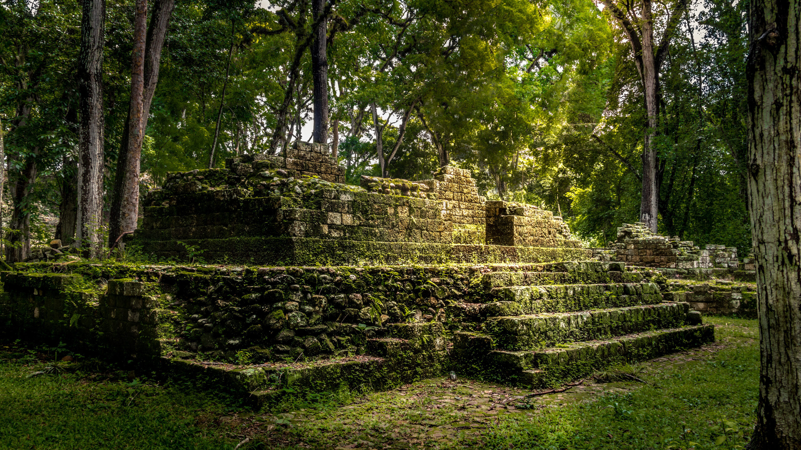 玛雅遗址 洪都拉斯 石砌金字塔 热带森林 青苔台阶 4k