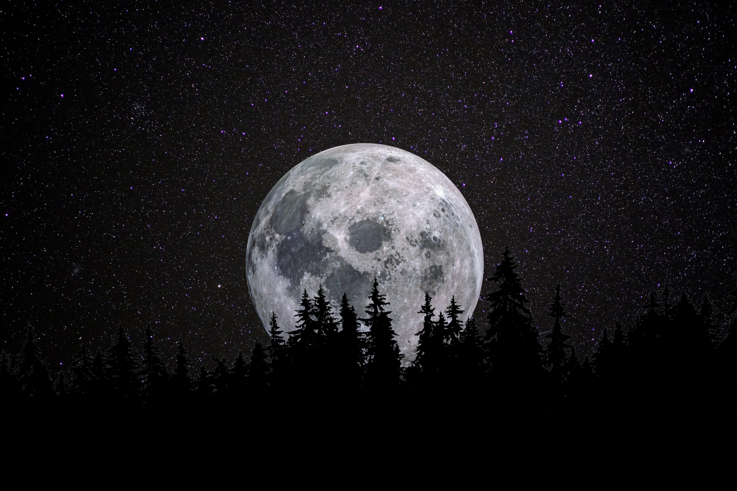 满月 森林 繁星 夜景 月亮 冷色调 静谧 8k